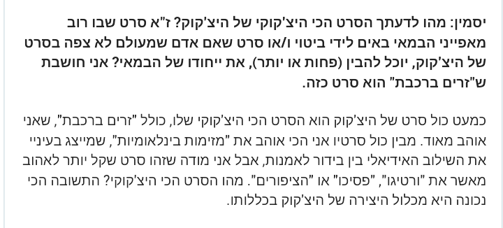 הסרט היפה הזה – שוודאי ירגש כל חובב קולנוע, הגם אם לא יחדש הרבה מאוד לאותו חובב – מהלל את היצ'קוק, אך לא פחות מכך את טריפו, שמת בגיל צעיר, 52, ומעניין לחשוב לאילו עוד שיאים יכול היה להגיע. הרי היצ'קוק ביים את "פסיכו", גדול סרטיו ובטח המוכר והמצוטט שבהם, כשהיה בן 60. איזה סרט גדול של טריפו פספסנו?